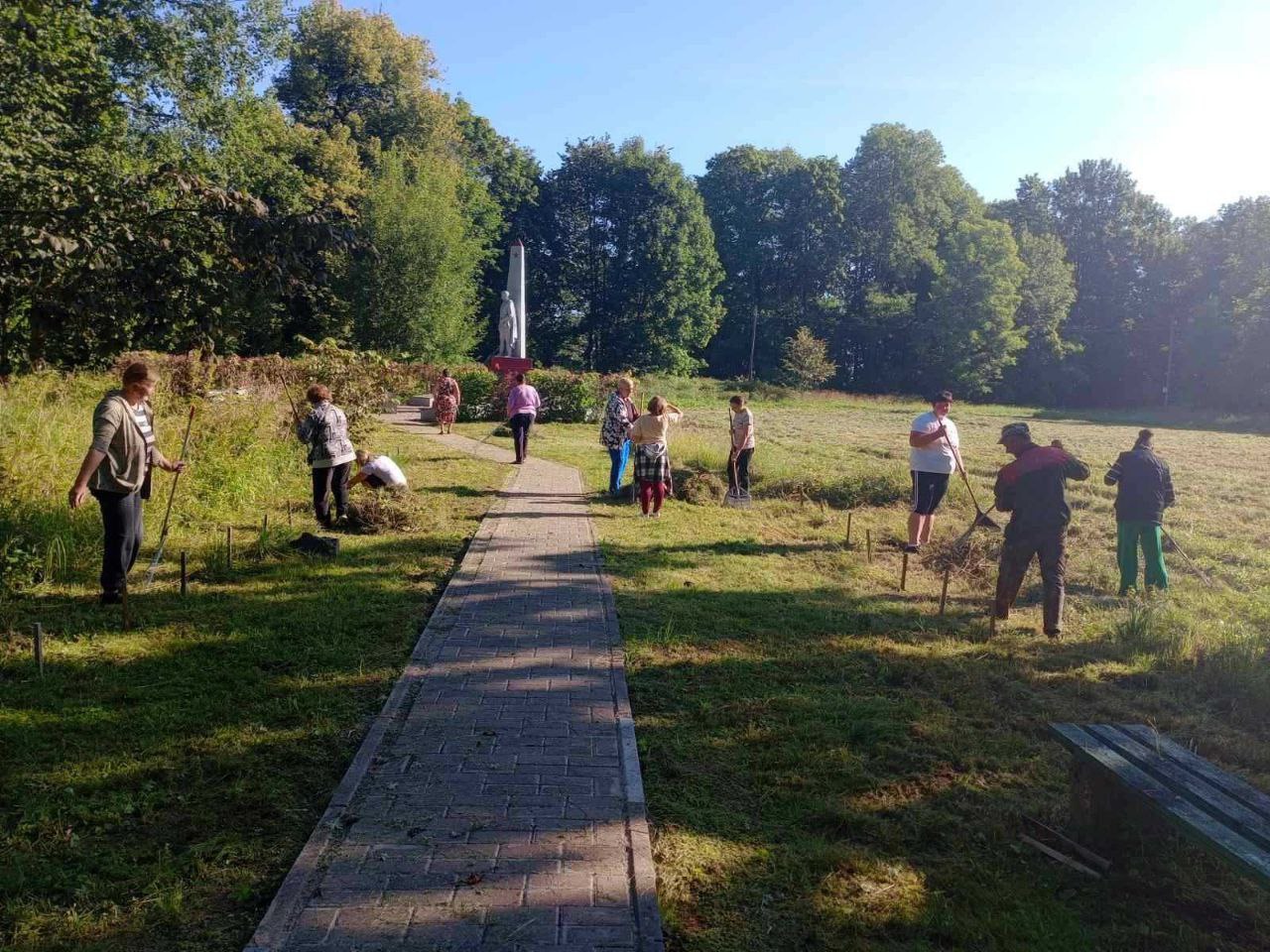 Специалисты привели в порядок памятник воинам-освободителям братскую могилу: очистили плитку к прилегающей территории от мусора убрали сухую листву уничтожили сорняки и поросли, а также оказали помощь одинокому пенсионеру в ремонте деревянного настила в виде мостика для перехода через канаву.