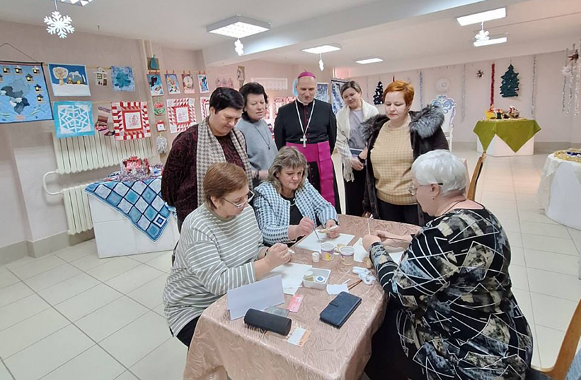 В центре культуры расположилась большая тематическая выставка, на которой свои творческие работы представили художники и мастера народных ремёсел, учреждения культуры Верхедвинщины.