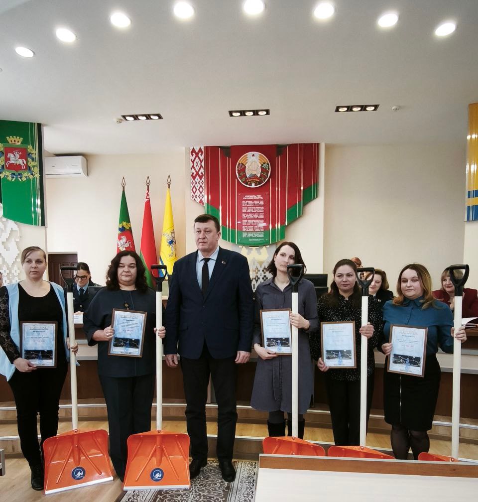 Активным участникам конкурса заместитель председателя райисполкома Дмитрий Реут вручил полезные «орудия производства» — лопаты для уборки снега.