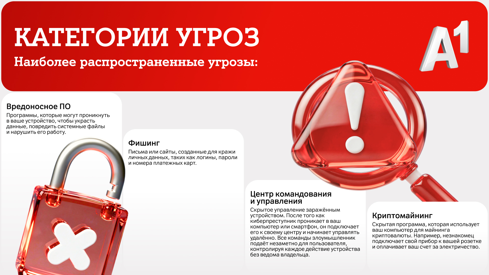 Также услуга от А1 умеет отслеживать и предотвращать и другие типы угроз: например,
