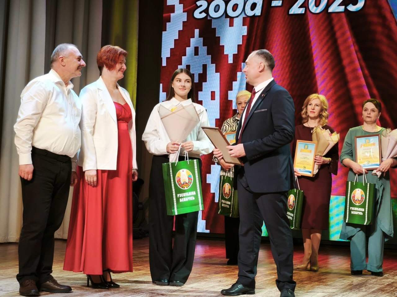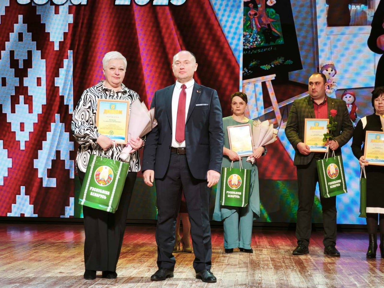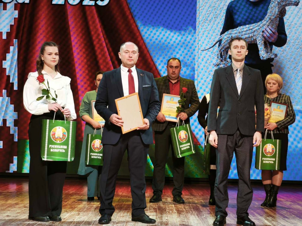 На празднике «Верхнедвинщина трудовая» чествуют земляков, достигших лучших результатов в разных сферах деятельности. Лауреатов праздника поздравляет председатель райисполкома Виталий Лавринов.