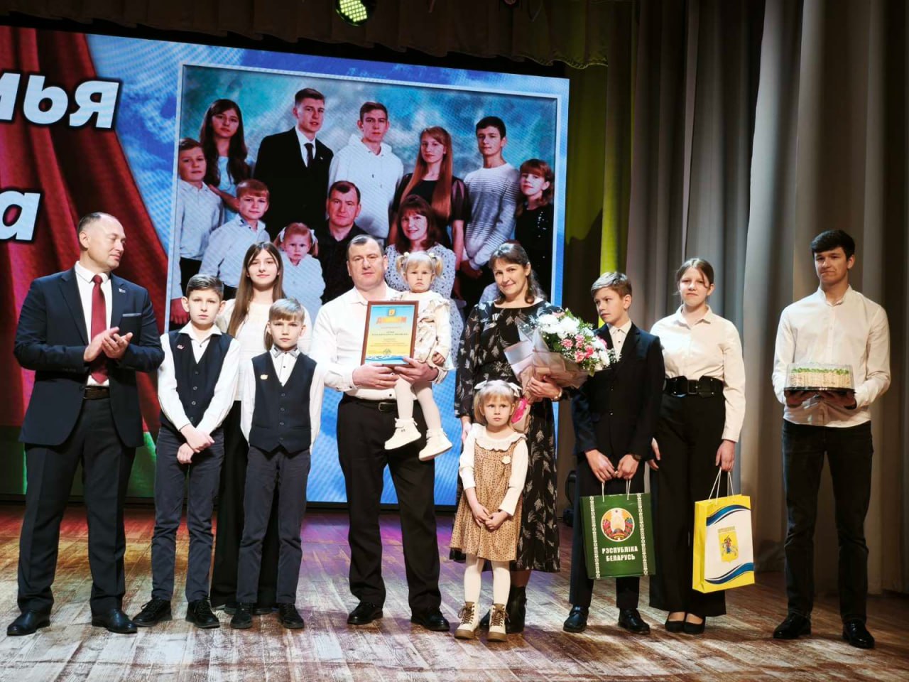 Земляки тепло приветствовали семью Натальи и Олега Грибовских, в которой воспитываются 11 детей, 8 из которых – несовершеннолетние. Наталья Вячеславовна награждена Орденом Матери.